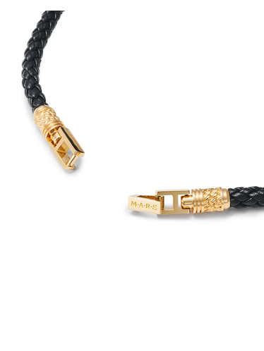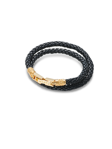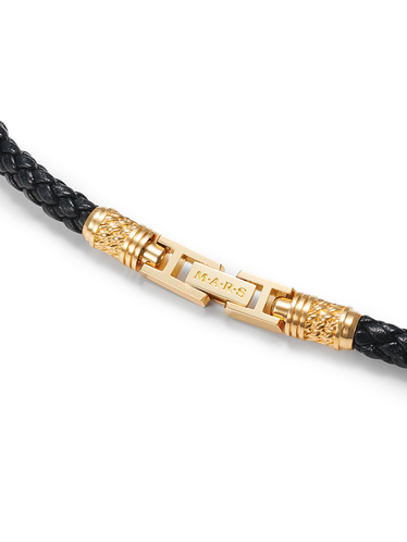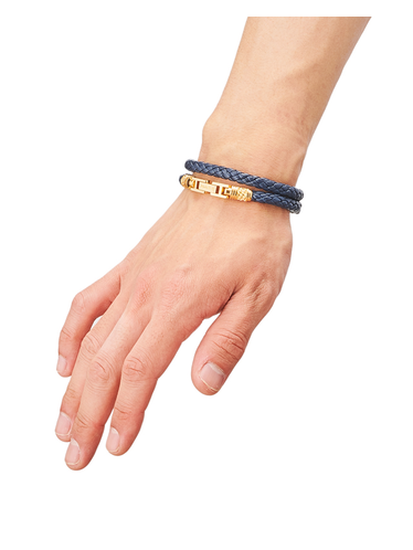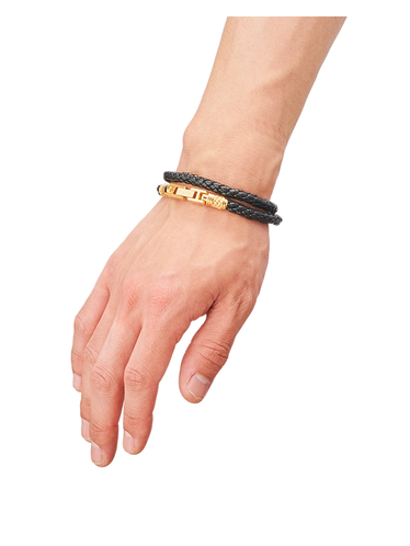 8本編みのレザーとCOMPOSIT (コンポジット)デザインのフックパーツが組み合わされたユナイトレザーブレスレットのK18イエローゴールドバージョン。単品付けはもちろん、レイヤードブレスレットとしてもオススメのブレスレットです。