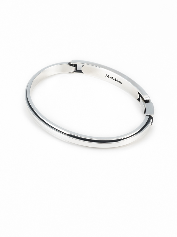 バングルとブレスレットが融合したバングレットシリーズのフランバングレット。プレーンのバングル本体にIDプレートのパーツを組み合わせたタイプ。シンプルで飽きの来ないデザインが様々なスタイルにフィットします。またレザーブレスレットやバングルと相性が良く、重ね着けすると更に洗練されたスタイルになります。