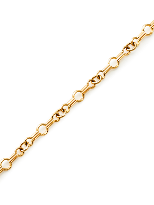シンプルなデザインかつライトなボリューム感で、K18イエローゴールドがエレガントな雰囲気のブレスレットになっています。