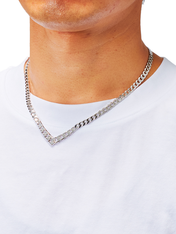 これによりネックレスを着けた際に、胸元から首にかけチェーンが綺麗なV字を描きます。