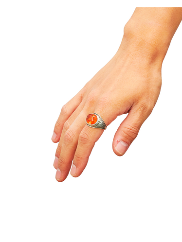 本物のシナモン蟻を樹脂で固め天然石に見立てリングにセットしています。