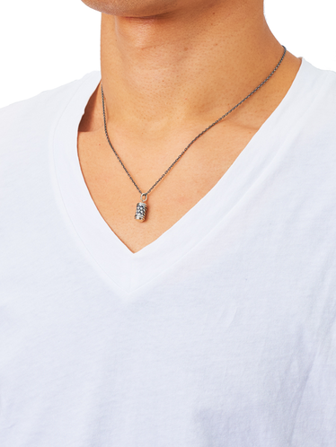 M・A・R・Sを代表するデザインであるCOMPOSIT SERIES(コンポジットシリーズ)のベレルネックレス。 コンポジット、ライン、平面とが緻密なバランスにより組み合わされ、デザインが形成されている。編み込み部分が持つしなやかさ、エッジ感を強く持たせた硬質さ。相反する要素が巧みなデザインと仕上げにより融合している。ボリュームを抑えたカプセル型のネックレスはどのスタイルにも馴染みやすく、独特のデザインはコーディネートのアクセントになります。