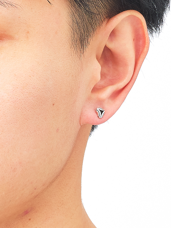 エンブレム調のトライアングルフレームにマーズオリジナルカットを施したオニキスをセットしたピアス。シルバーとブラックの色合いが耳元で存在感を演出します。