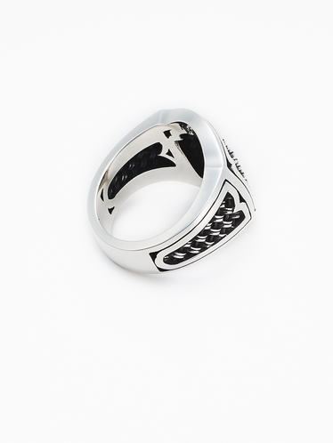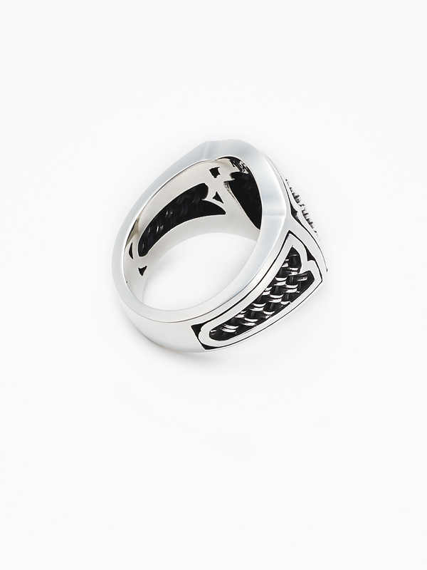 M・A・R・Sを代表するデザインであるCOMPOSIT SERIES(コンポジットシリーズ)のシビリティーリング。エンブレムをモチーフにコンポジットの編み目をダイナミックに使用した大ぶりなリング。インパクトのあるデザインに仕上がっている為、片手に一つだけ付けると更にインパクトのあるスタイリングになると思います。コンポジット特有のカスタマイズも可能です。エンブレムモチーフのリングになっていますので、オリジナルのエンブレムを作るようなイメージでカスタマイズが可能です。