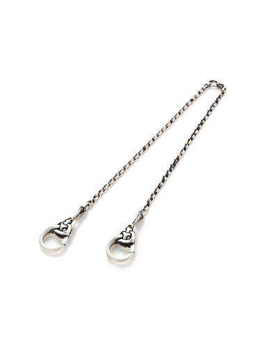 チェーン中央部のサークルがアクセントとなる、ナロータイプのシルバー素材のウォレットチェーン(全長約45cm)。細身のチェーンを使用しているので、デニムは勿論、スラックスなどのパンツにもコーディネートしやすい上品なシルエットを描きます。Wフック仕様の為、財布や鍵などの着脱が容易に行えます。